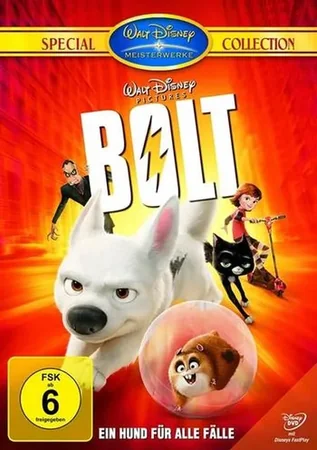 - Alman Çoban köpeği Bolt, hayatını bir aksiyon TV dizisinin kahramanı olarak yaşamaktadır ve süper güçlere sahip olduğuna inanmaktadır. Ancak bir gün, istemeden stüdyodan uzaklaşır ve burada dişi kedi Mr. Mittens ile hamster Rhino ile tanışır. Bu üçlü, birlikte çıktıkları yolculukta Bolt, aslında süper güçlerinin olmadığını ve stüdyo dışındaki gerçek dünyanın çok farklı olduğunu keşfeder. Bolt karakterine usta oyuncu John Travolta ses verirken, film Walt Disney Animasyon Stüdyoları tarafından gelişmiş CGI teknolojisi kullanılarak hazırlanmıştır.